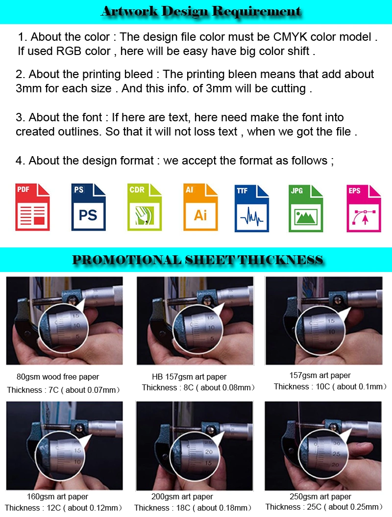 | Опции окончательной обработки | Глянцевая пленка ламинирование, матовая пленка ламинирование, золотая фольга штамповка, Debossing, тиснения, Spot УФ-покрытием, горячей штамповки пленки, сверкающими, умирают резки; | ||